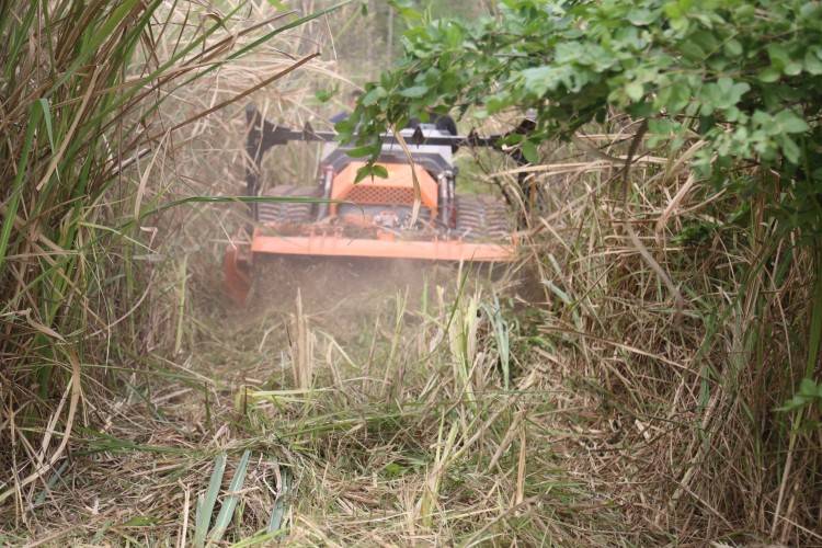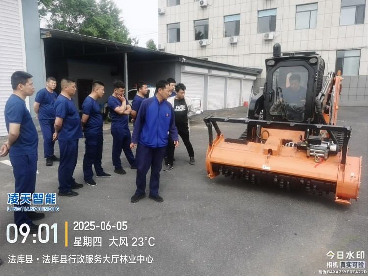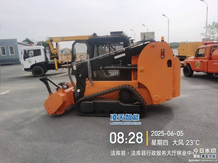 森林隔離帶開辟車是由隔離帶開辟機模塊、大型鈍刀式切削模塊、重型林木抓斗、鏟斗、快換機構、履帶式行走機構、臂架舉升裝置、駕駛室、電氣液壓系統(tǒng)和無線遙控器組成。設備應采用雙三角形履帶式行走機構,具備建造防火隔離帶的能力,可粉碎樹 木、灌木、草等各種可燃性植物,能在茂密的樹林、灌木林、草原中迅速開辟防火隔離帶。可粉碎的樹木直徑≥ 250mm,連續(xù)粉碎時可粉碎的樹木直徑≥80mm,可粉碎的樹木、灌木和草的高度沒有限制。在山地林區(qū)開辟防火隔離帶、維護防火通道、開辟臨時救援通道、建立安全島、輔助清理火場、開設生土隔離帶等應急救援任務。