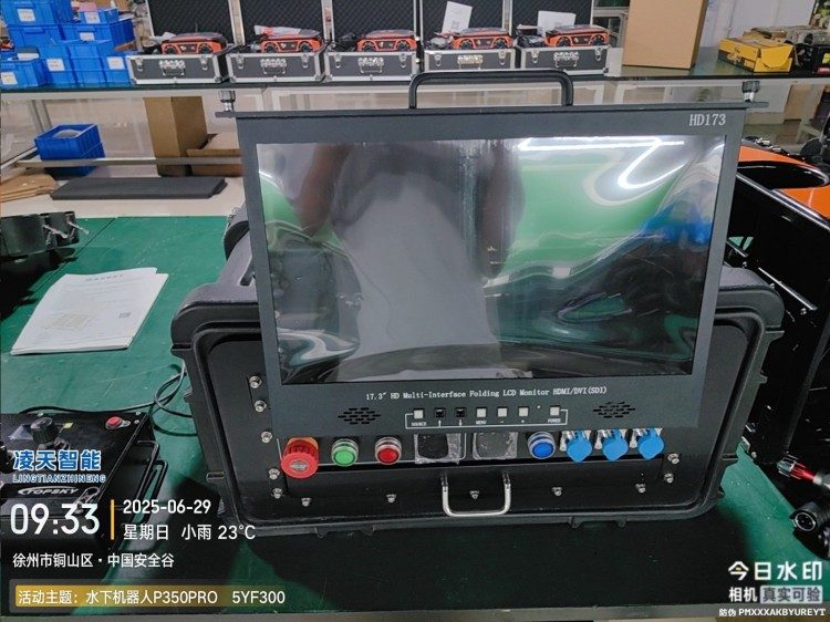 (7)專為水下機器人硏制的岸基操控系統,功能可靠,使用方便;17寸高亮LED 3屏折疊屏,屏幕亮度1000nit,帶有亮度