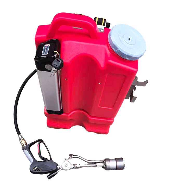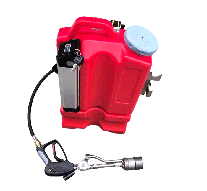 本產品是電機驅動水泵產生一定壓力的水流,通過對水流壓力和流量的控制后,再通過可產生細水霧的專用噴槍噴出進行滅火的裝置。改裝置設置了限壓限流、缺水保護、欠壓提醒等多種保護。系統沒有壓力容器。徹底解決了使用壓力容器的安全隱患。